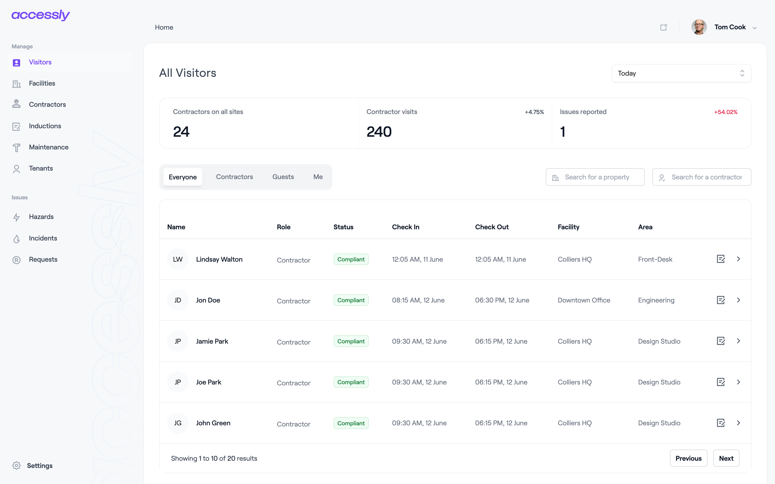 Efficiency isn't just a feature for us at Accessly; it's the core of our facilities management solution. We act as an extension of your business, making viewing and reporting on-site visits, incident reports, contractor compliance, and inductions simple. Accessly automates and enhances the experience for everyone interacting with your properties. As a result, you’re always ahead of your compliance and safety requirements.